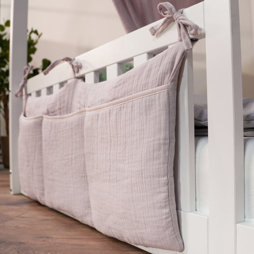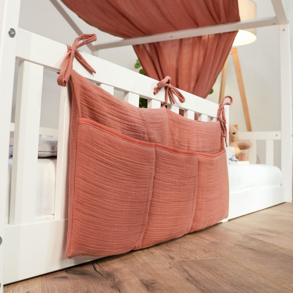Der Organizer wird aus weichem, langlebigem Musselin-Baumwollstoff gefertigt – passend zum Baldachin des Enno Betts. Das Material ist schadstofffrei, atmungsaktiv und pflegeleicht. Die Taschen sind stabil vernäht und bieten ausreichend Platz für alle Lieblingssachen deines Kindes.